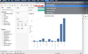 Ensuite, dans Tableau à partir du menu Serveur, vérifiez que vous êtes connecté, sinon connectez-vous au serveur à l’aide de vos informations d’identification Tableau Online, puis sélectionnez Publier le classeur.