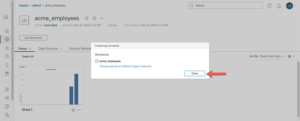 Une fois le classeur publié correctement, vous recevrez la notification suivante (cliquez sur Terminé)