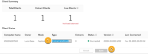 Dans la section État du client, définissez le nouveau pont sur Extract and Live, puis cliquez sur Enregistrer.