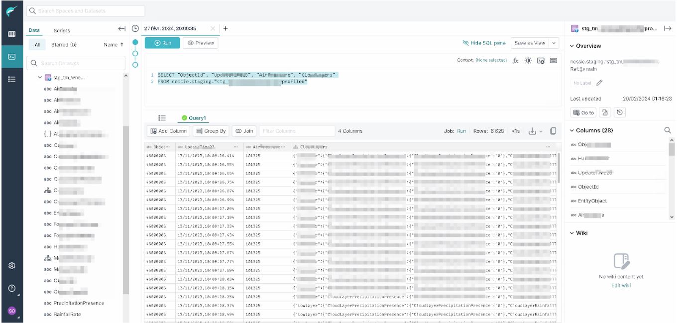 Sans doute que nous avons omis de vous dire que pour pousser la donnée vers Apache Iceberg… Nous avons créé au niveau de Dremio un schéma de données. Cette structure de données est très souple et sait accueillir des données assez hétérogènes.