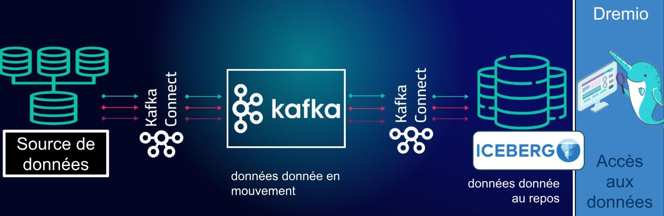 De plus en plus d’architectes supportent ce type de cas d’usage. Ici, je vous propose d’explorer une architecture qui pousse les données vers le broker de données Kafka, l’amène jusqu’à Apache Iceberg pour en faciliter les analyses. Et enfin Dremio pour exploiter cette donnée.