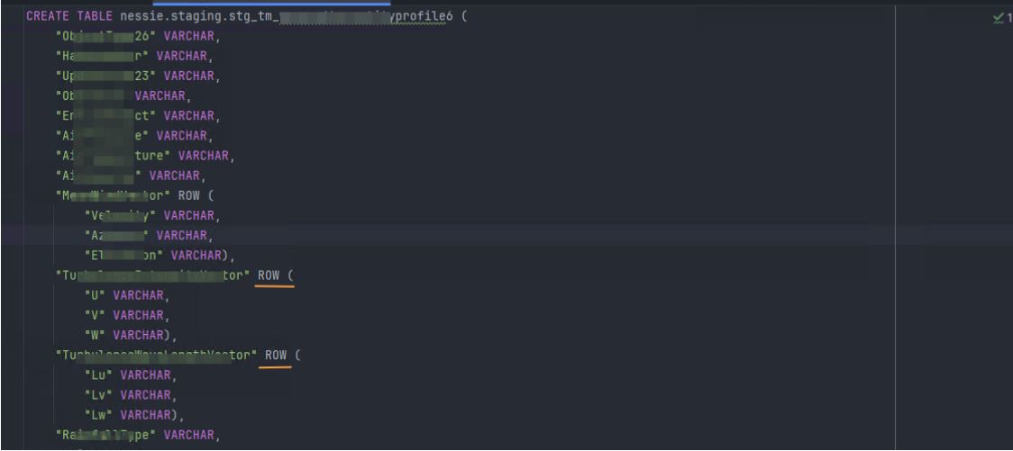 Comme vous pouvez l’observer nous avons des colonnes de type “ROW” qui structure un type complexe. Vous pouvez en déduire ici que vous allez être en mesure de stocker des données multiformes.