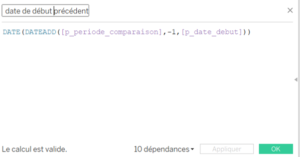 - Champ pour avoir la date de début de la période précédente qu’on veut analyser.