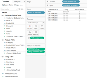 Ici, on choisit Customer ID de la table Salary pour avoir tous les clients, salaires, ainsi que le nombre de commandes qu’ils ont passé. Nous n’avons plus le problème de duplication des lignes pour les commandes passées. Ainsi, les salaires retournés sont corrects.