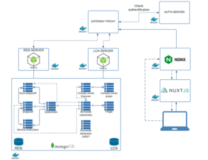 Un seul docker Mongo nous permet de gérer l’ensemble de nos bases. Pour l’essentiel, nous en utilisons 3 : une pour l’authentification des utilisateurs (gérée par le auth-server), une pour l’administration des subventions (gérée par le RDS-server) et une pour la gestion des différentes démarches proposées par LCA (gérée par LCA-server).