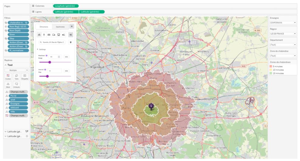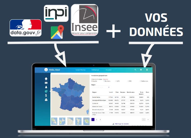 Par exemple, en croisant vos données et les données ouvertes, vous pourrez sélectionner une zone géographique précise et y faire apparaître instantanément les critères socio-démographique issus des données de l’INSEE, ou encore les données de l’INPI ou de la Base d’Adresses Nationale.