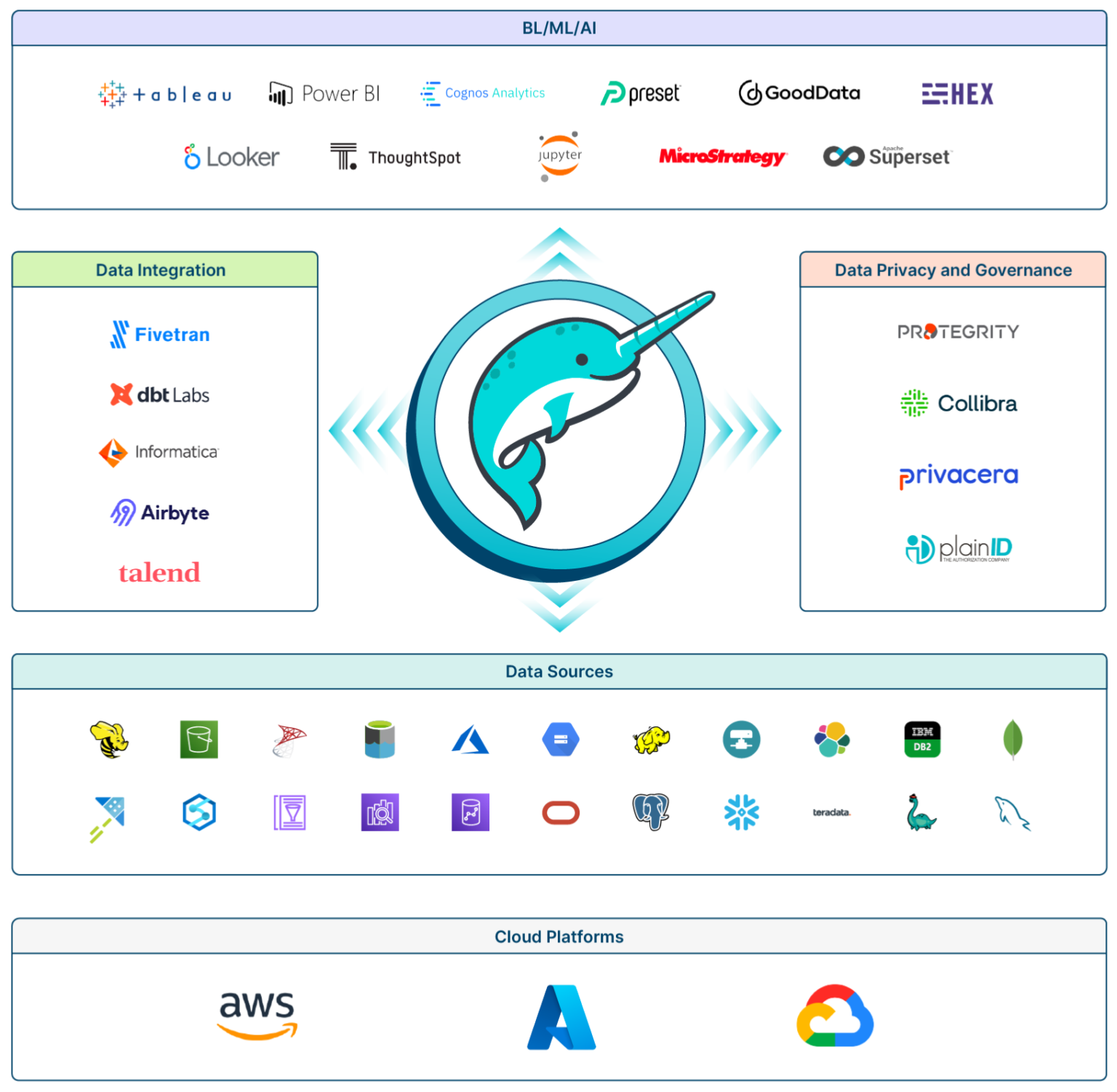 Dremio fournit la connectivité vers les différents cloud storage (S3, Azure Block Storage, GCS). Il permet aussi de connecter les data warehouses, les bases de données opérationnelles et même une autre instance de Dremio