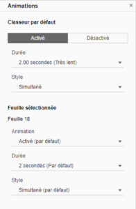- Créer une animation au niveau du classeur qui impliquera que chaque interaction se dotera de l’animation définie pour le classeur incluant ses propriétés.
